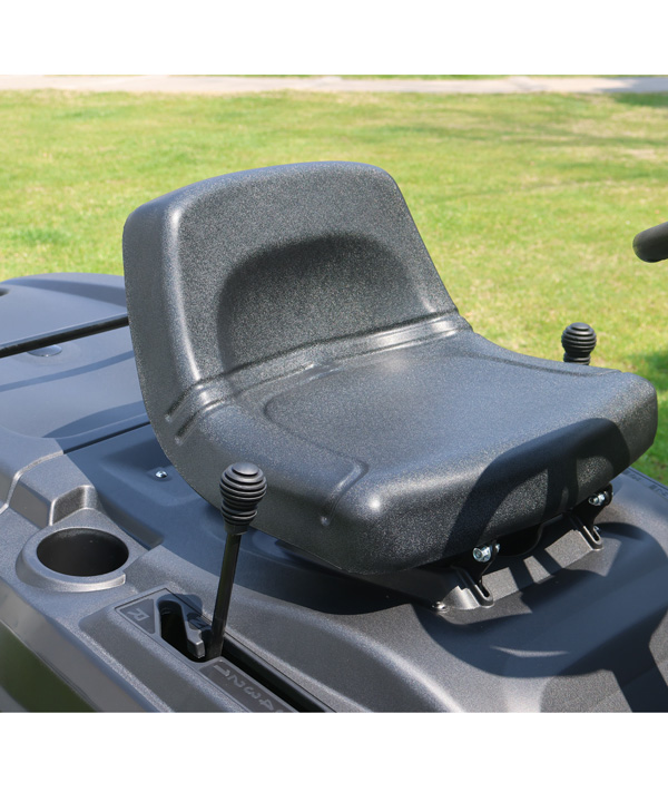 The 42inch cutting width enables extensive coverage in a single pass, while the dual-blade design ensures precise and uniform grass cutting, facilitating optimal nutrient absorption and enhancing the lawn's aesthetic appeal with a smooth, even finish. Equipped with a LONCIN engine, the mower delivers robust and consistent power output, ensuring reliable performance across diverse terrains and grass types. The optional hydraulic transmission system, featuring foot-operated forward and reverse controls, offers effortless operation and automated gear shifting, significantly reducing operator fatigue. The mower's stable operation effectively absorbs and dampens vibrations, minimizing impact and noise levels, thereby enhancing overall ride comfort.